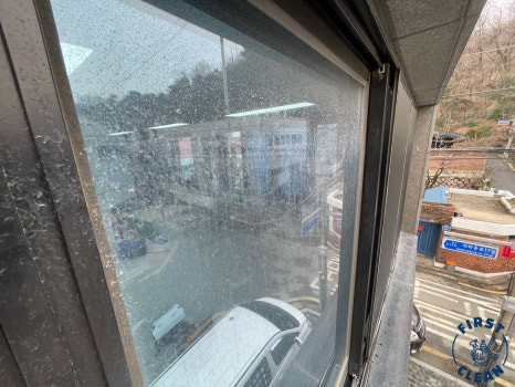 유리창의 묵은 오염이 사진으로도 느껴질 정도라면 이곳은 상당한 오염이 자리잡고 있다는 것을 확인할 수 있습니다.
